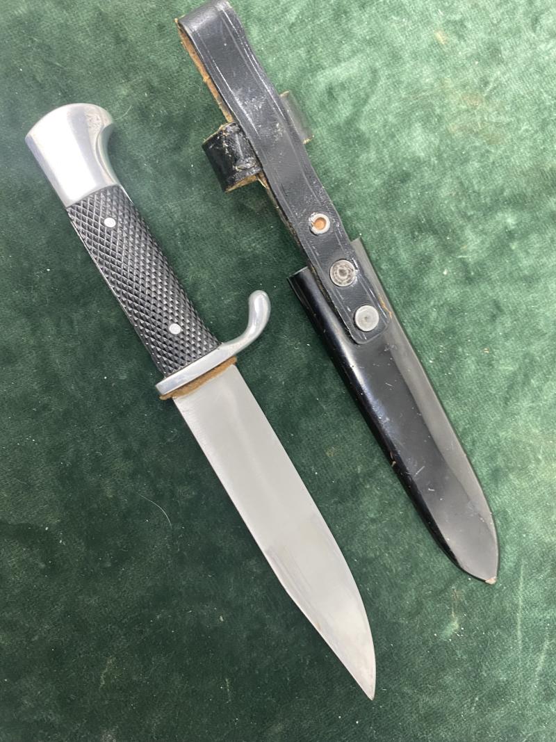 A MINT SMALL ‘DJ’ - (HITLER YOUTH) KNIFE WITH HJ DIAMOND ON SCABBARD.