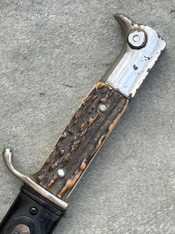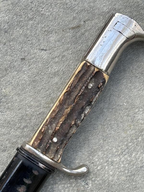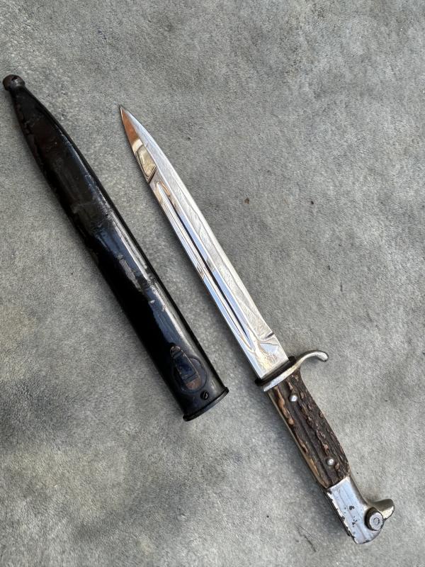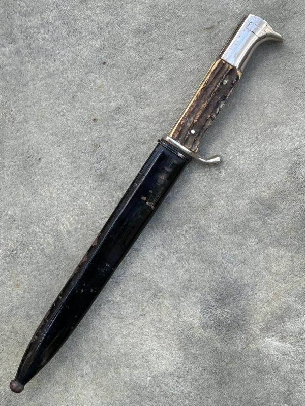 A SHORT THIRD REICH DRESS BAYONET WITH STAG GRIPS RARE DISTRIBUTOR.
