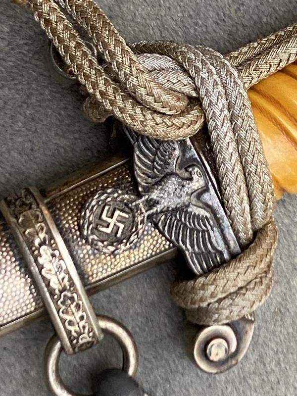 EXCELLENT EXAMPLE OF AN EICKHORN ARMY DAGGER WITH KNOT AND HANGERS.