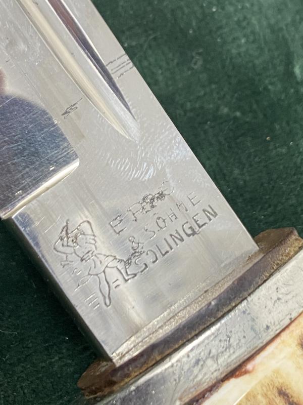 A SHORT ‘JÄGER DIV’ DRESS BAYONET WITH STAG GRIPS AND FROG BY E.P&S.