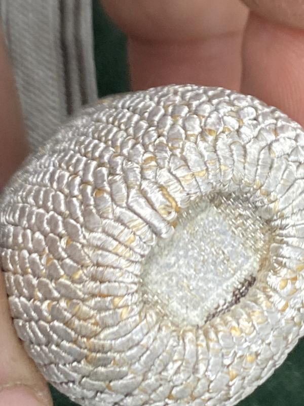 The whole knot has been used and on an edged weapon at some time, but is in perfect condition through. A super RARE item.