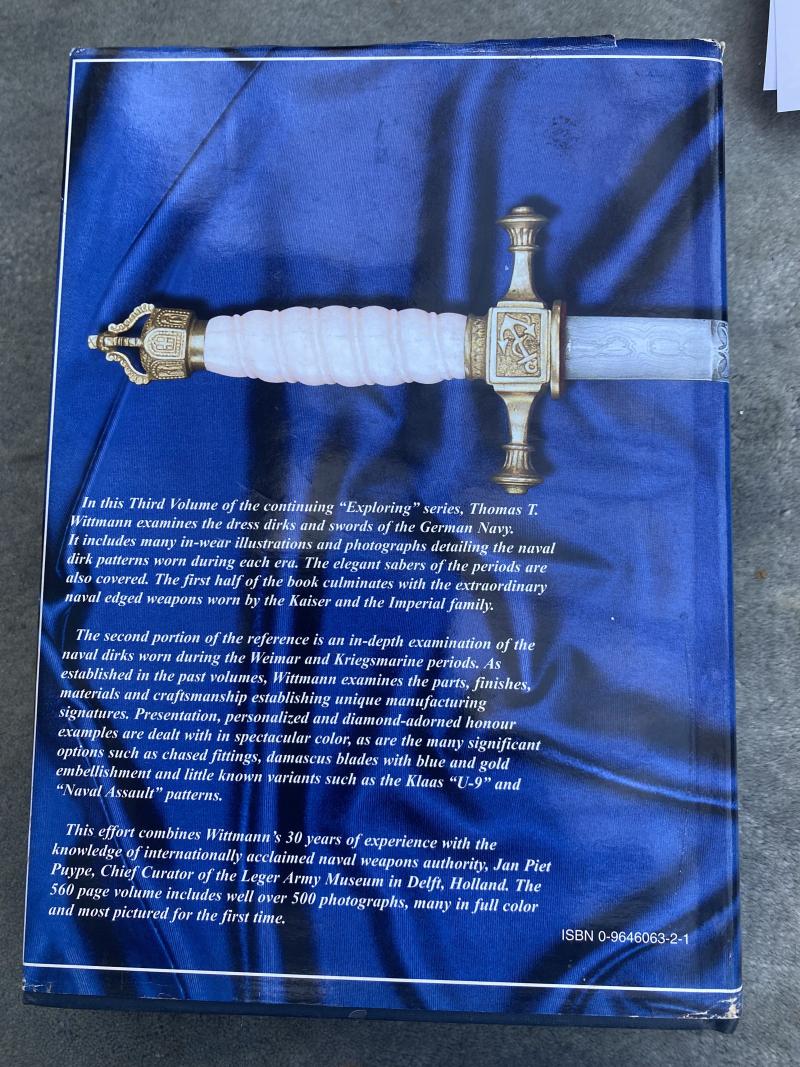 This is the 3rd book in the excellent reference book series written by Tom. This one cover the edged weapons worn by the German navy from pre WW1 up to and including WW2. Beautifully written with extensive photographs in colour and b/w. Fantastic sword section and invaluable information on the variety of daggers produced for the navy officers to wear. A superb book in every respect. This is a used edition but in perfect shape with original dust cover.