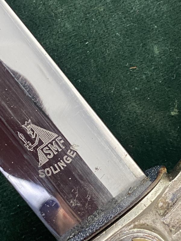 AN EARLY ALL NICKEL LUFTWAFFE 1st PATTN WITH UNIT MARKED BLADE.